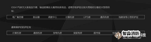 IG541氣體滅火系統(tǒng)壓力高,輸送距離比七氟丙烷系統(tǒng)遠(yuǎn),適用于防護(hù)區(qū)較大而分散的大型項(xiàng)目如: