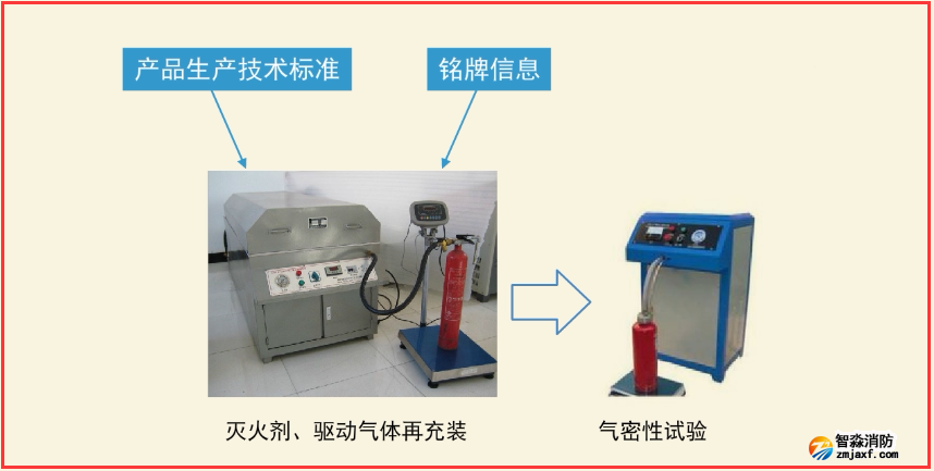 根據(jù)滅火器產(chǎn)品生產(chǎn)技術(shù)標(biāo)準(zhǔn)和銘牌信息,按照生產(chǎn)企業(yè)規(guī)定的操作要求,實(shí)施滅火劑、驅(qū)動氣體再充裝。再充裝后,逐具進(jìn)行氣密性試驗(yàn);