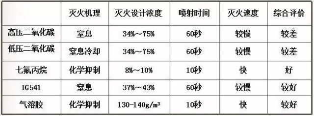 工程應(yīng)用時(shí),應(yīng)綜合考慮:滅火可靠性、環(huán)保性、對(duì)設(shè)備和人員的安全性、工程造價(jià)、技術(shù)成熟性等因素,選擇最佳的滅火系統(tǒng)。