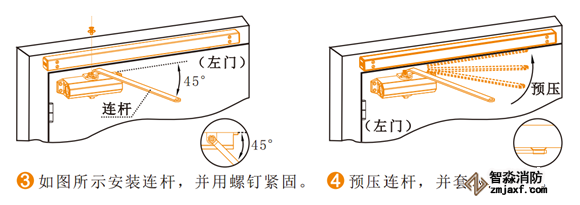 4) 確定好電動閉門器的安裝方向(拉門側(cè)或推門側(cè))安裝閉門器滑槽及液壓缸;