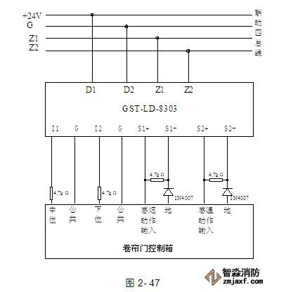 GST-LD-8303海灣卷簾門兩步降消防模塊安裝接線圖