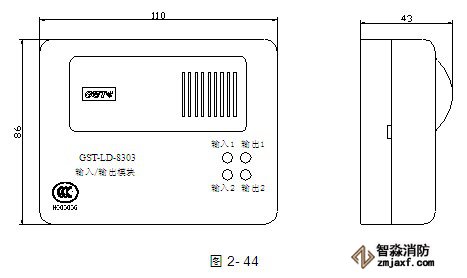 8303消防控制模塊的外形尺寸及結構示意圖如圖2-44所示。