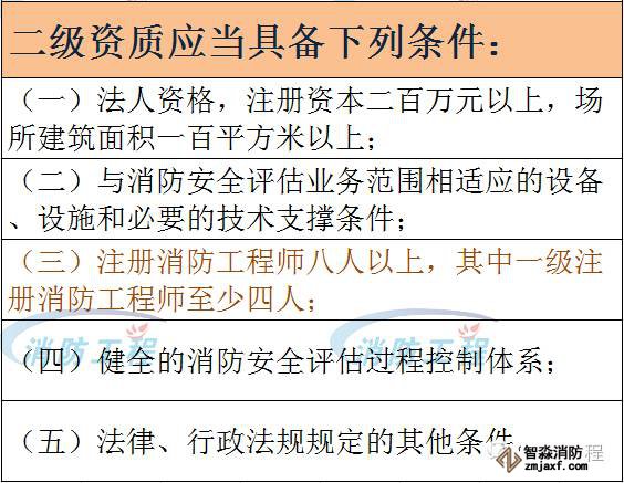 消防安全評估資質(zhì)分別分為一級、二級。